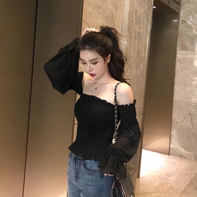 Giá Rẻ áo Trễ Vai Tay Lỡ Cách điệu Thắt Eo Forhim Ao Top Nu
