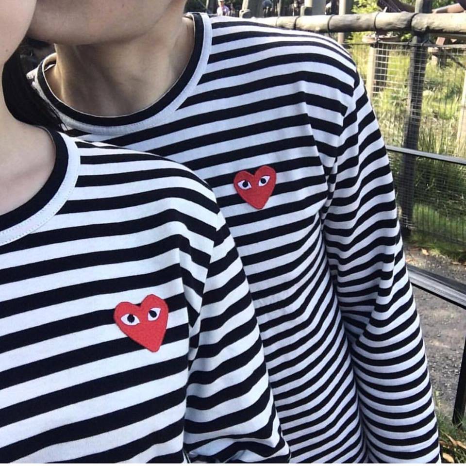 áo Thun Cotton Tay Dài Sọc Tim đỏ Nam Nữ Ulzzang Hàn Quốc Nhật Bản