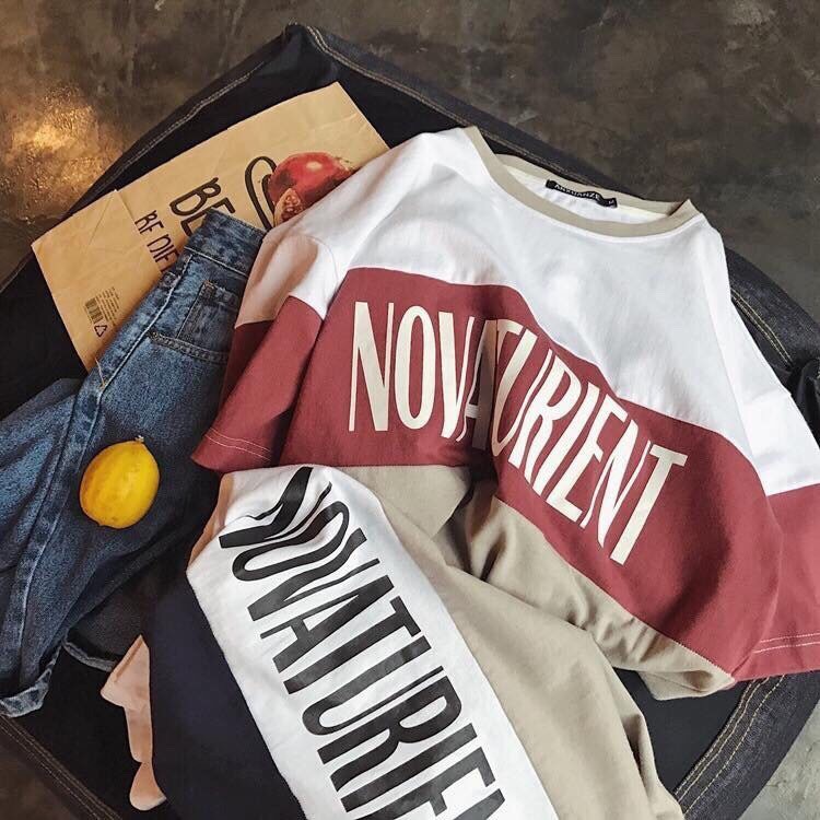 Giảm Giá áo Thun Tay Lỡ Phối Màu In Chữ Có 3 Mẫu áo Form Rộng