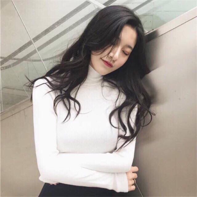 áo Thun Gân Cổ Lọ Tay Dài Nữ