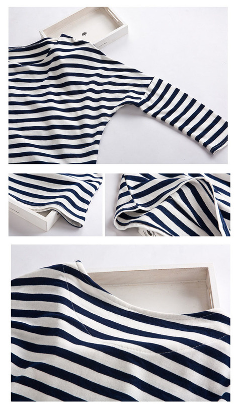 áo Thun Nữ Kẽ Sọc Ngang Tay Dài Cổ Thuyền đính Nút Thời Trang đơn