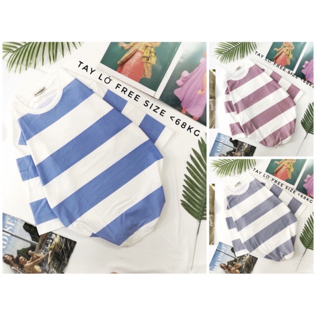 áo Thun Tay Lỡ Sọc Viền Tay Tl031 Tl032 Free Size