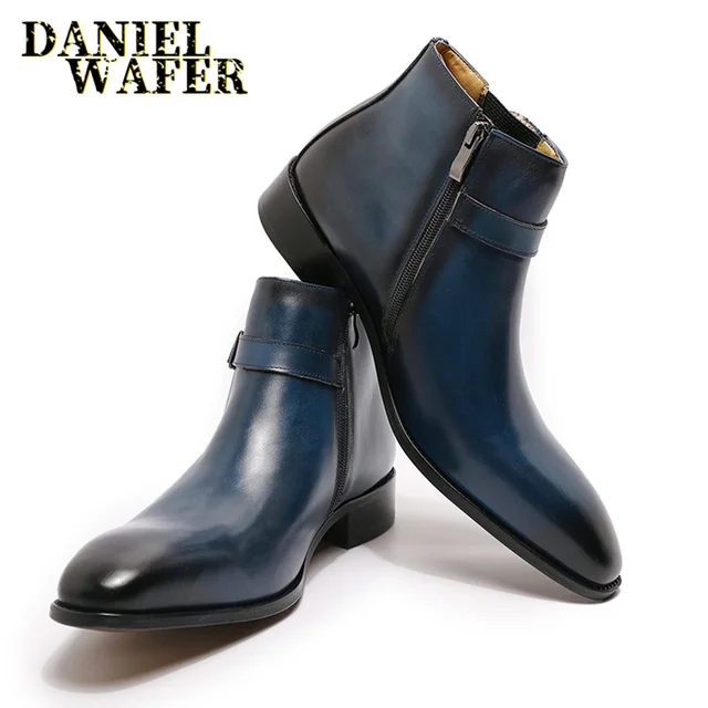 Homme Bottes Bottines Homme Boots En Cuir Pour Homme Top Vente En Ligne Bottines Zippees A Boucle Metallique Pour Homme Newchic