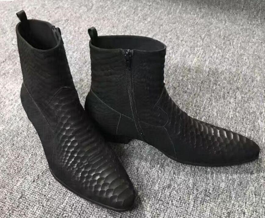 Homme Bottes Bottines Homme Boots En Cuir Pour Homme Top Vente En Ligne Menico Hommes Elegants Motif Crocodile Zippe A L Interieur Des Bottines Habillees Newchic