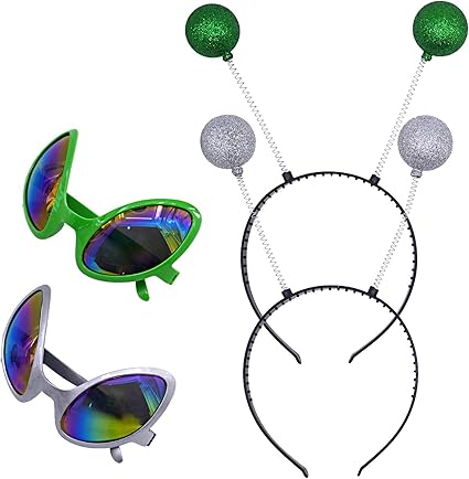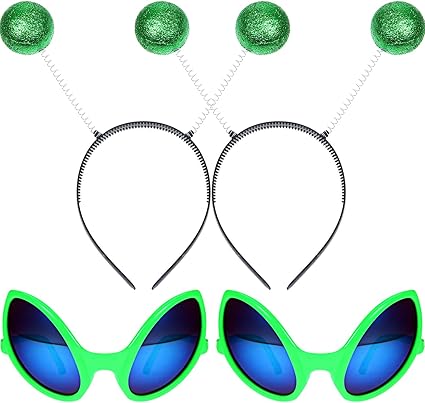 Amazon.com: 2 Pairs Alien Glasses Green Plastic Alien Sunglasses and 2 Pieces Martian Antenna Headband Boppers Green Ball Headband Boppers for Fancy Dress Party Halloween Decoration: Toys & Games