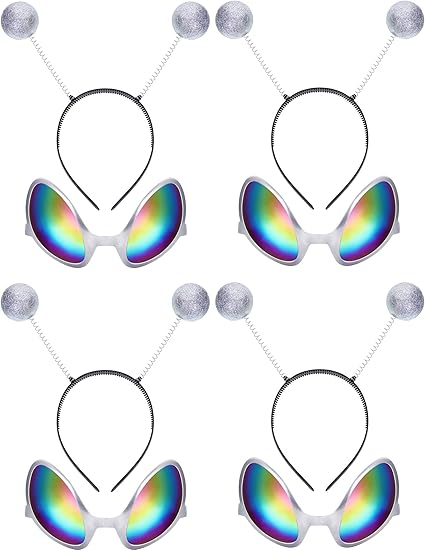 Amazon.com: 4 Pairs Alien Glasses Silver Plastic Alien Sunglasses and 4 Pieces Silver Martian Antenna Headband Alien Headband Boppers Ball for Halloween Decoration Party Favors: Toys & Games