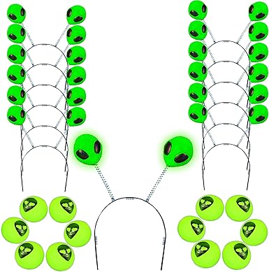 Amazon.com: Alien Headband Glow In The Dark Boppers With Glow Alien Ball High-Bounce [12 of Each] Alien-Faced Antenna Headband - For Kids Party Favors, Halloween, Space Themed Birthday Party: Clothing