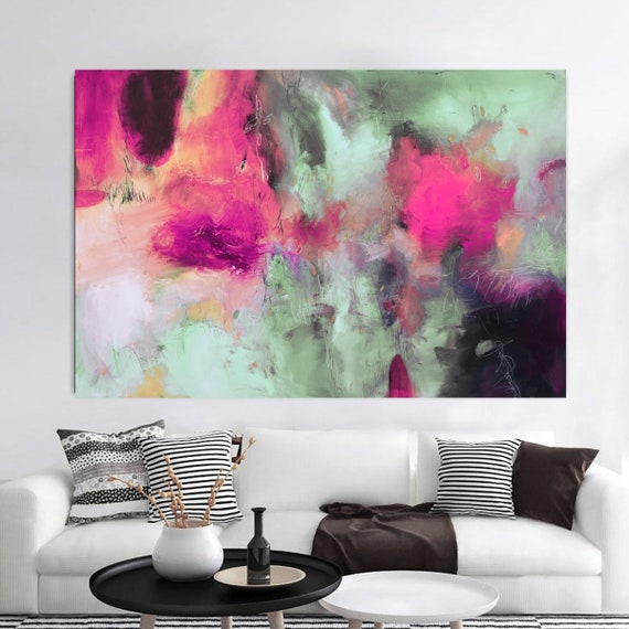 Arte della parete rosa fucsia grande pittura rosa lime | Etsy