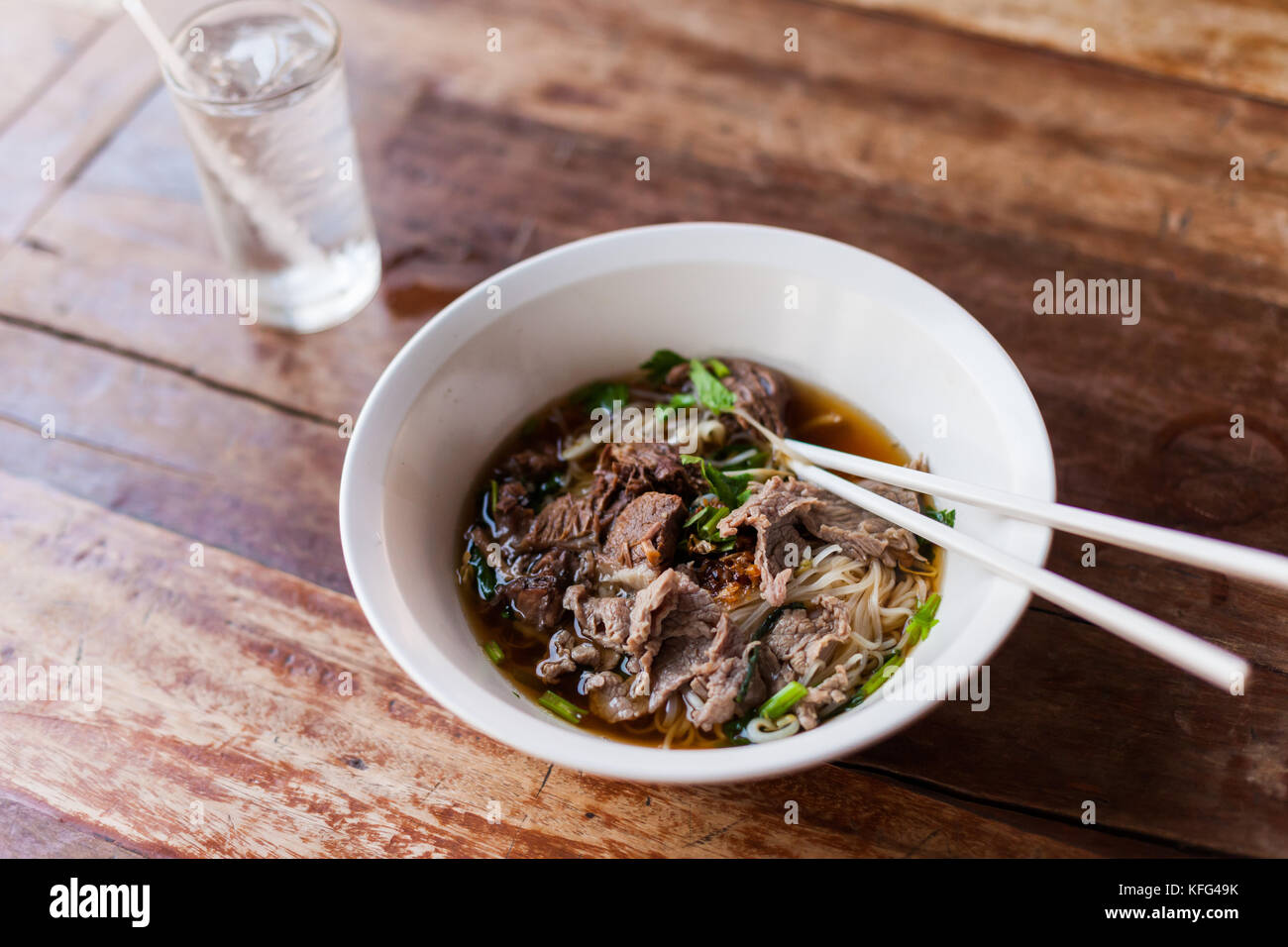 Thai Beef Noodle Soup On A Wooden Table Stock Photo Alamy