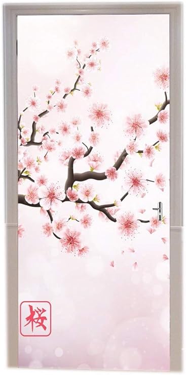 A.Monamour Stickers Muraux 3D Branche De Cerisier du Japon avec La Floraison des Fleurs Roses Sakura Romantique Floral Vinyle Chambre Porte Stickers Papier Peint Peintures Murales Porte Autocollants: Amazon.fr: Cuisine & Maison