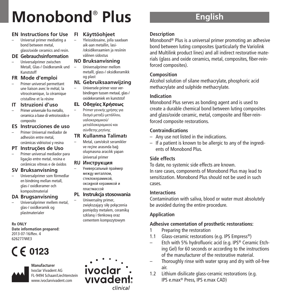 Ivoclar Vivadent Monobond Plus User Manual | 27 pages | Original mode